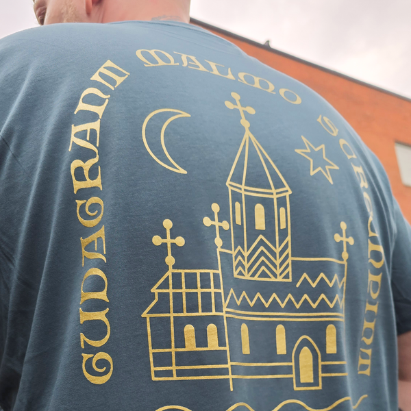 Stargazer - en grön t-shirt med guldigt tryck fram + bak